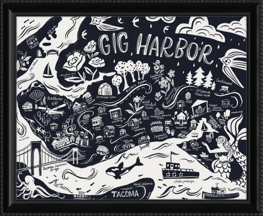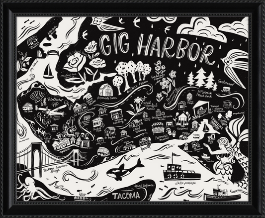 Sketches and colorful, illustrated paintings inspired by living near the Salish Sea. Mix and match these pieces to recall that special feeling of being on the water.