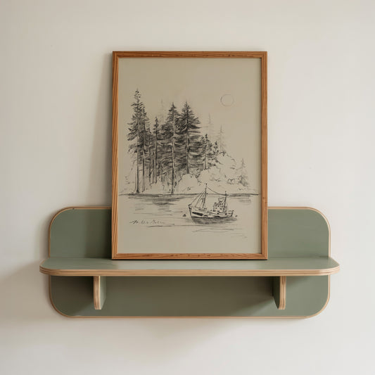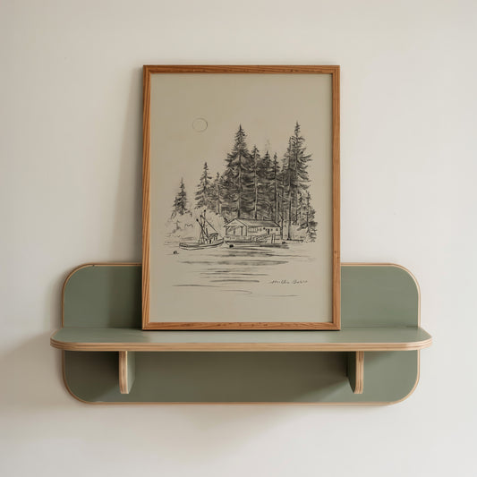 Bocetos y coloridas pinturas ilustradas inspiradas en la vida cerca del mar de Salish. Combina estas piezas para evocar esa sensación especial de estar en el agua.