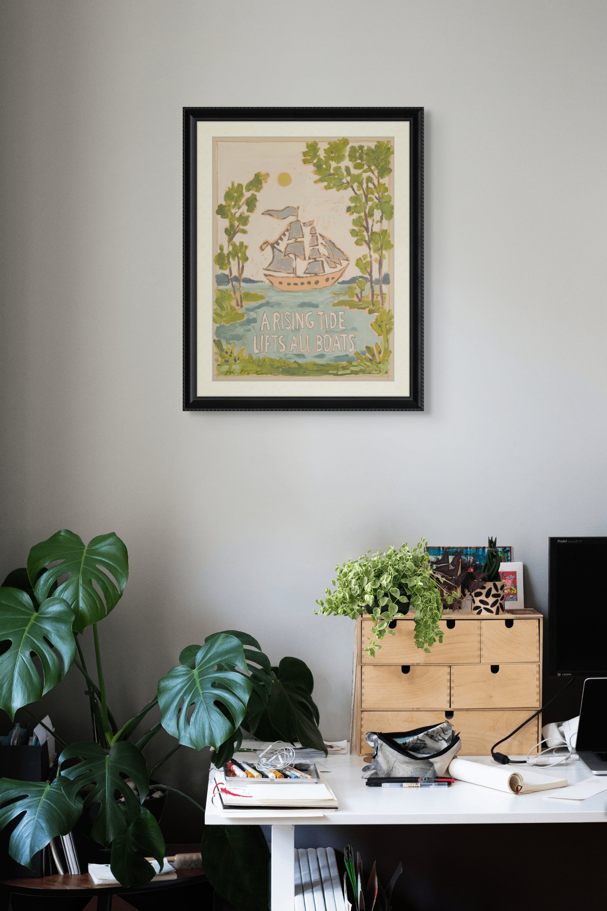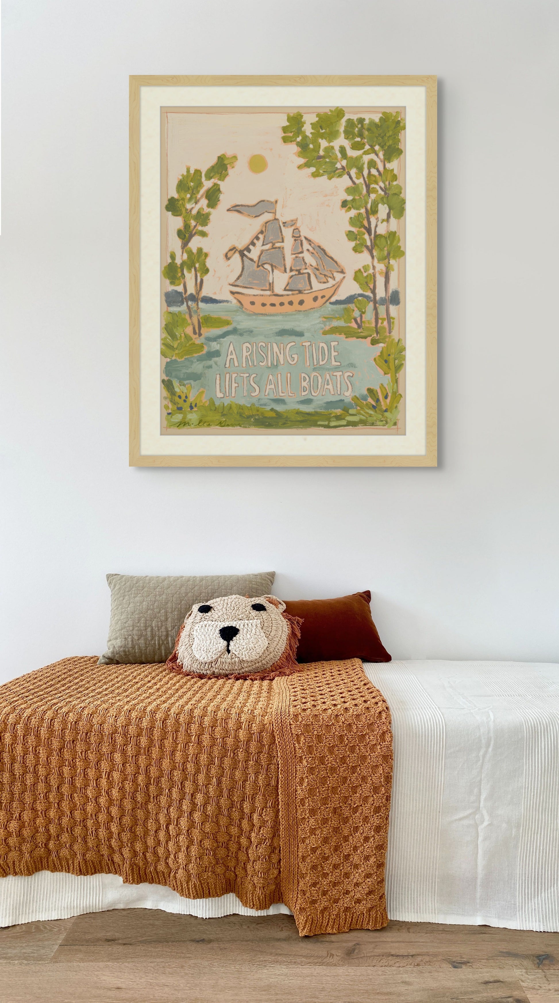 Tous les cadres sont soigneusement sélectionnés pour s'harmoniser avec le style des œuvres de Mollie Marigold et fabriqués sur commande. Chaque colis est livré prêt à être accroché, avec fil de suspension et crochet mural préinstallés !