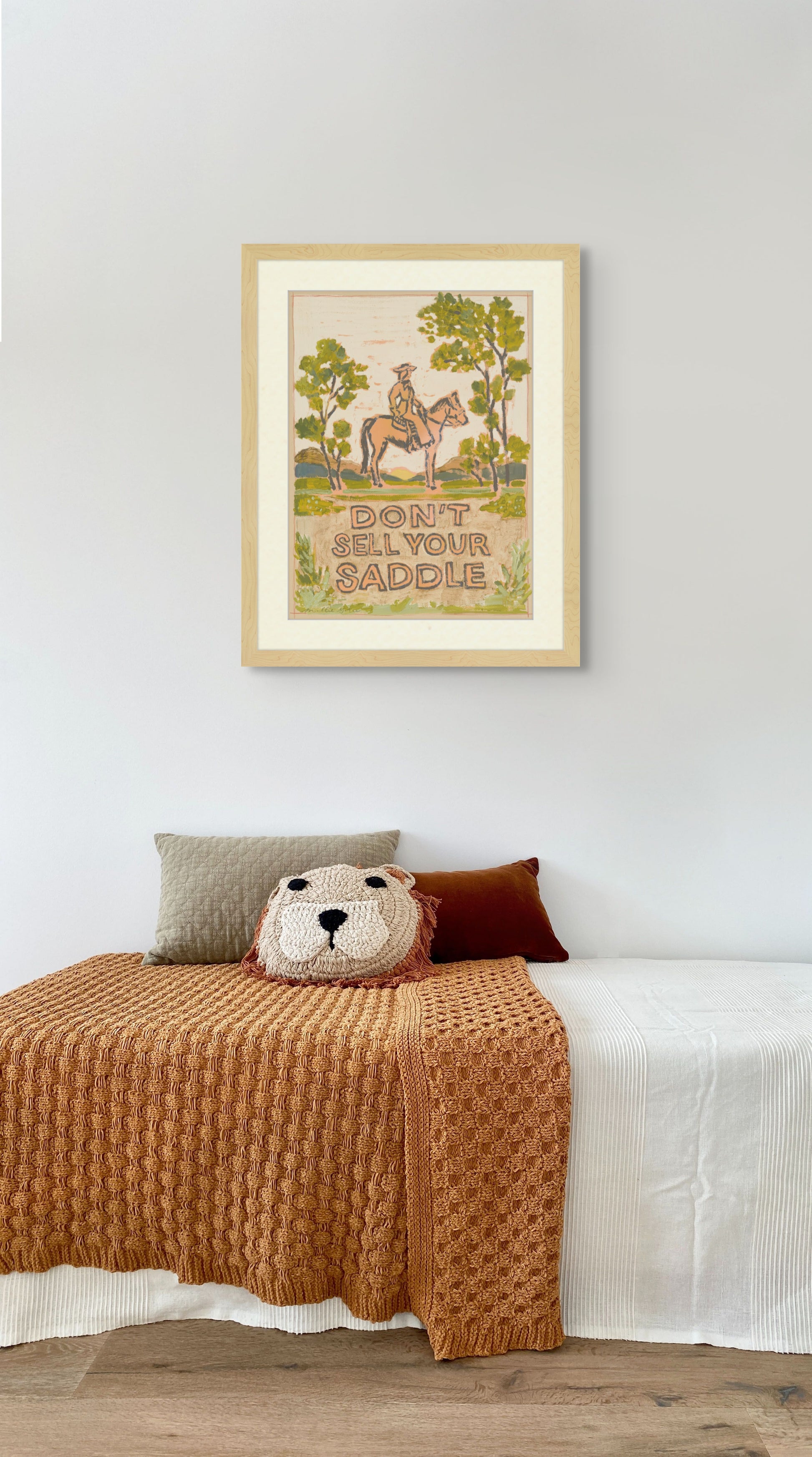 Our prints showcase Giclée archival-grade inks on a specialized matte white, semi-smooth cotton paper that maintains the original painting's warmth and texture while preventing fading and discoloration.