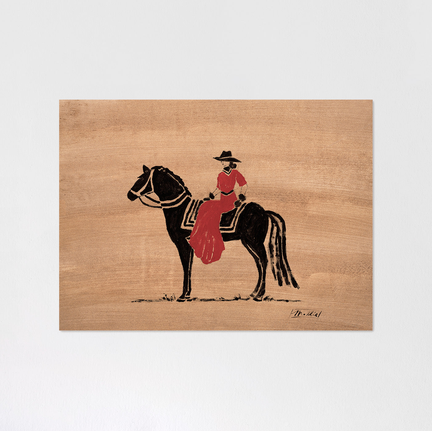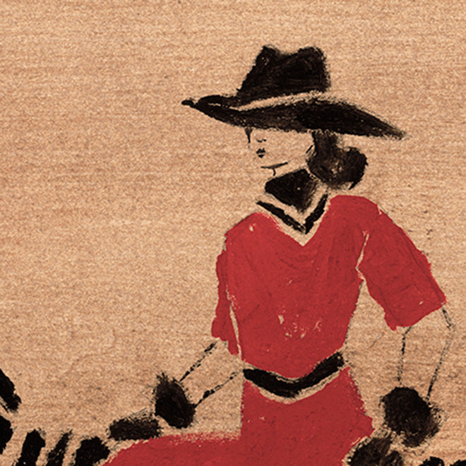 Set against a warm brown ground, the figure becomes the disruption. The earth- toned backdrop speaks to steadiness and restraint, a calm that exists only to be broken. Against it, the red dress ignites symbolizing vitality, instinct, and the pulse of a woman fully embodied. It is not decoration, it is a warning flare.