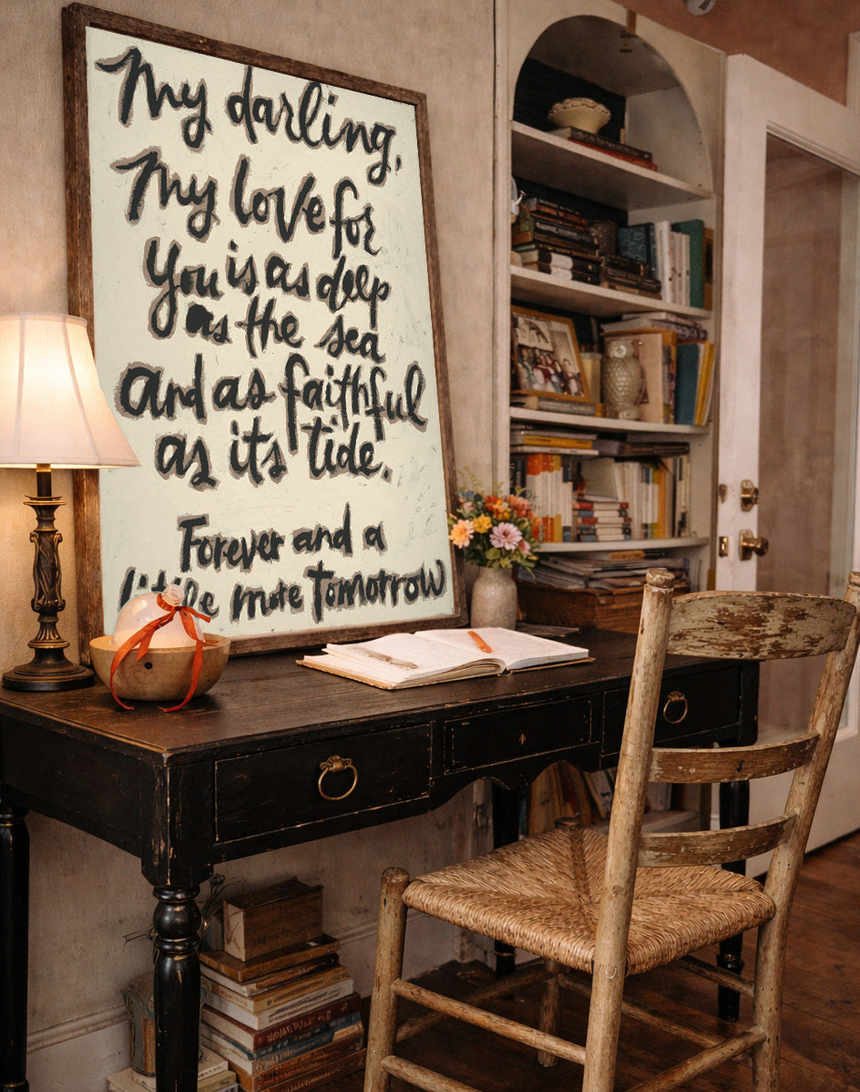 The work reflects a love that is vast and unwavering: as deep as the sea and as faithful as the tide. Like the ocean, this love holds mystery and depth; sometimes calm, sometimes powerful, but always constant. Like the tide, it returns again and again, dependable in its devotion, guided by an unseen force that never fails.