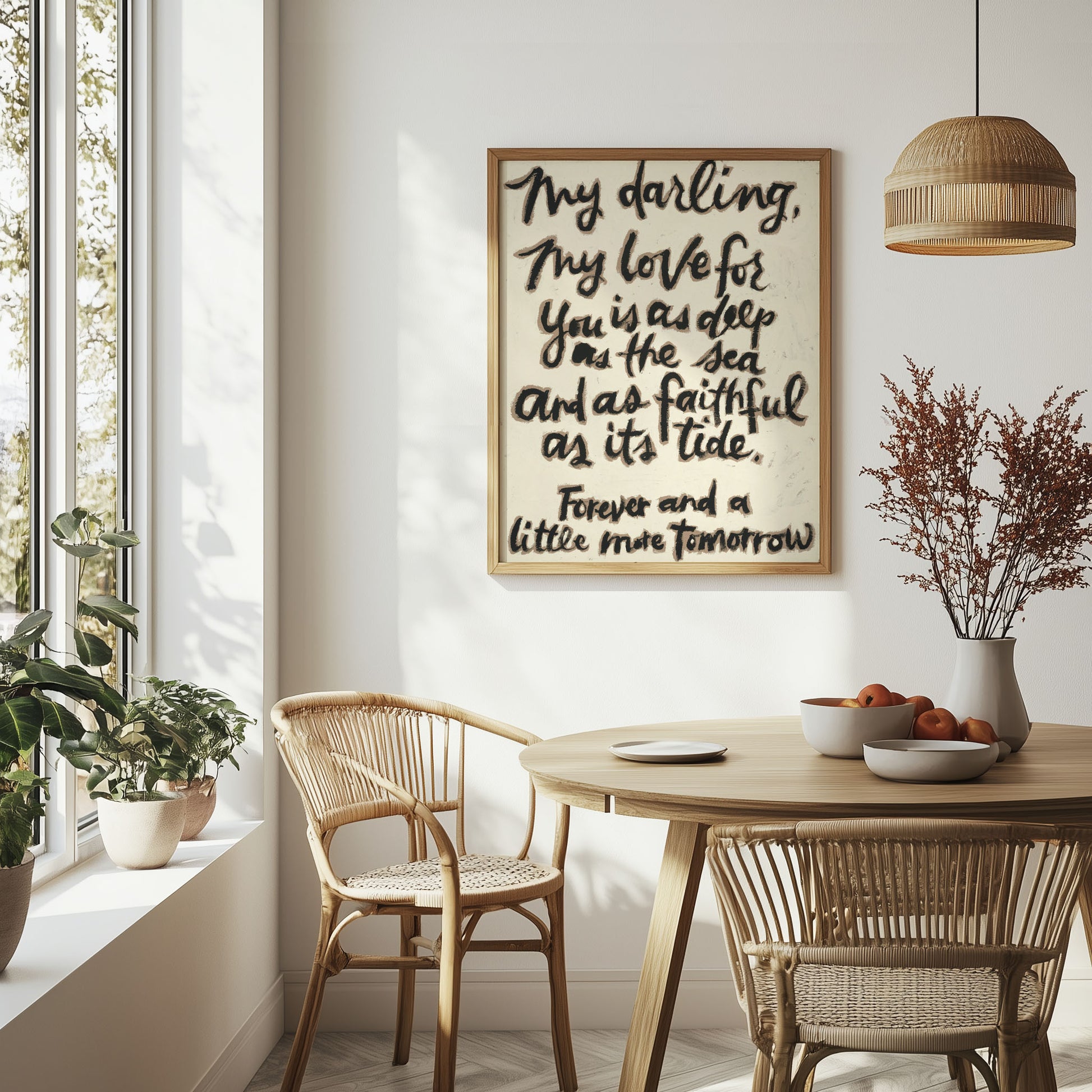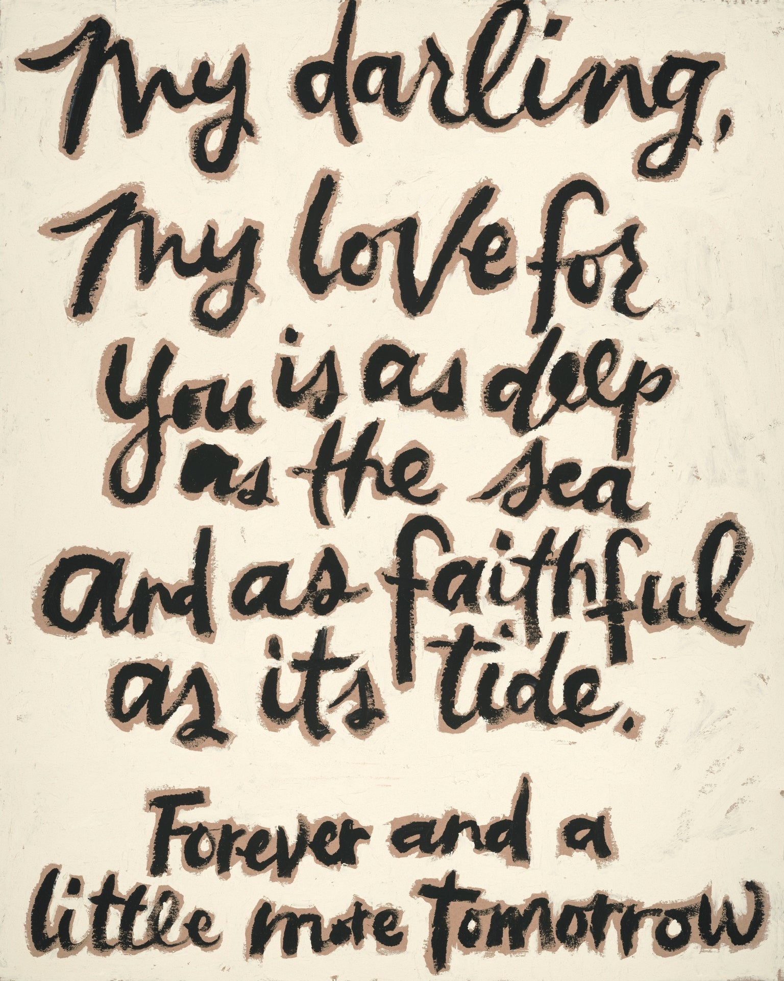 My Darling is a visual poem, an ode to enduring love. Rendered in black and white, the piece strips away distraction and color so that feeling becomes the focus. In its simplicity speaks volumes.